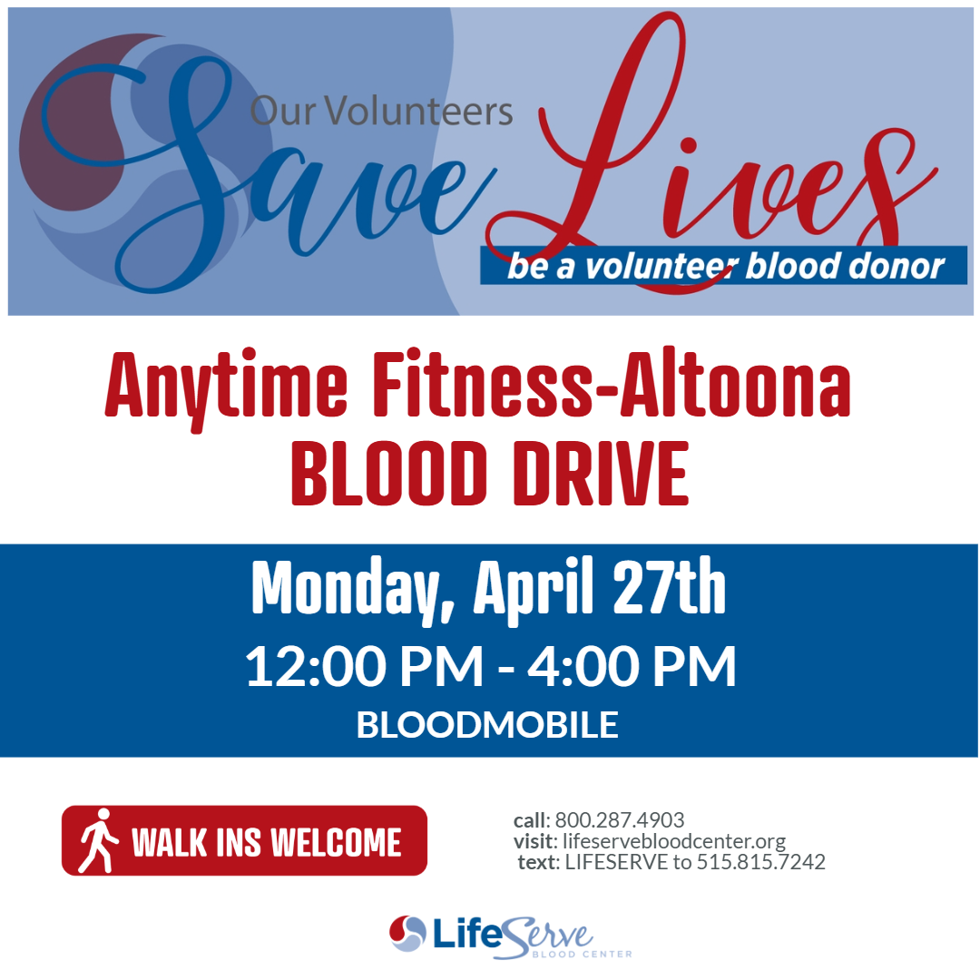 LifeServe Bloodmobile Blood Drive - Anytime Fitness Altoona