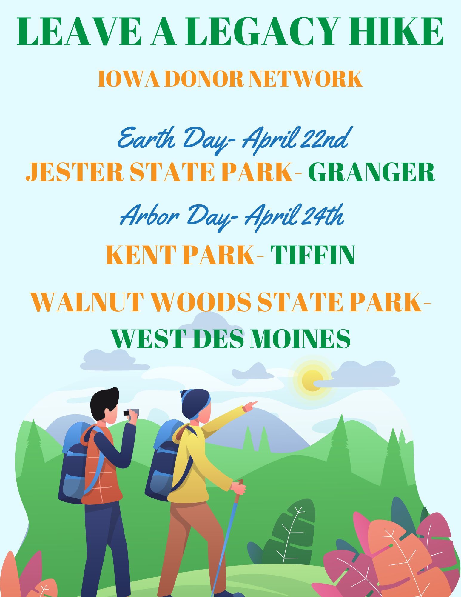 Join Community Engagement Coordinator, Jackson, in celebrating Donate Life Month and Earth Day with a Leave A Legacy Hike.
